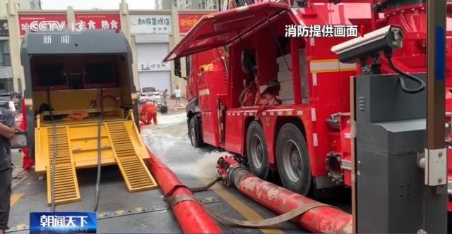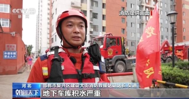 邯郸市复兴区建设大街消防救援站副站长 吴迪:8月4日中午12时许,我队站接到总队命令,涿州市双阳区联合一号院小区地下车库积水严重,大约1万立方米,我队站一套远程供水系统在此处进行排涝作业,远程供水系统是一套大功率排涝系统,可10小时将此处积水排干净。