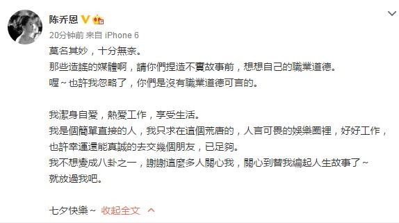 因“霍心”结婚痛哭? 陈乔恩是这样回应的!