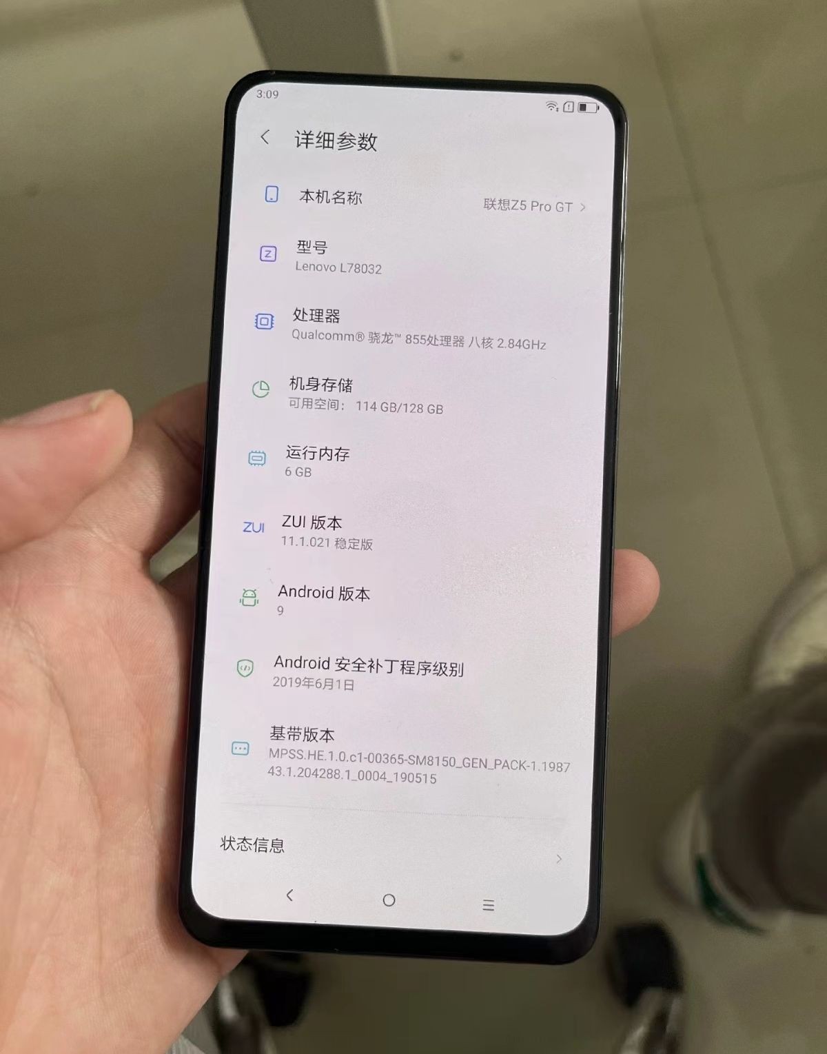 第三台是联想Z5 Pro GT,搭载骁龙855处理器,重量210克,是这三部手机中性能最强的。别看联想手机已经没落了,但这机器保值率很高,原因是内置多开黑科技,目前8G+128G二手行情在500元左右。