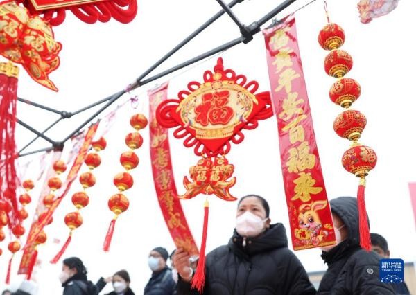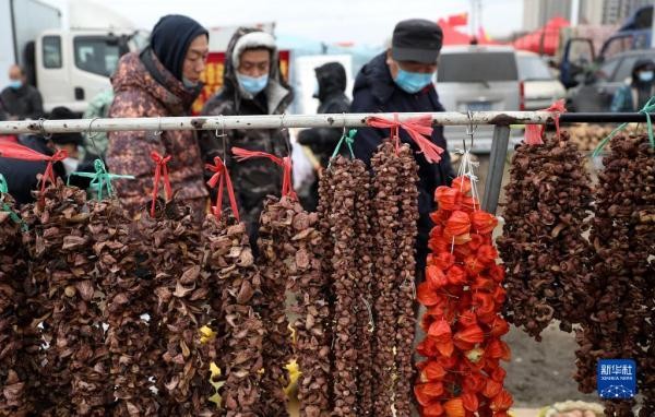 春节临近,辽宁沈阳蒲河大集上一派热闹的景象,琳琅满目的年货吸引众多市民前来采购,年味十足。