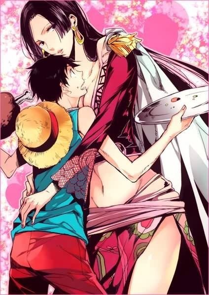 在洗澡时遇到蒙奇·D·路飞后,经过一系列的事件,女帝对路飞有了好感,但由于汉库克情感单一,经常对路飞的行为作出误解,只对路飞温柔,帮助路飞成功前往推进城。再前往推进城中,路飞无处躲藏,只好爬到汉库克的背上,用披风遮挡住。