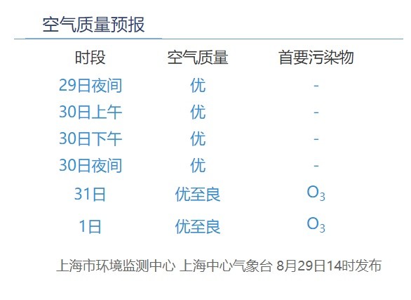 8月30日8时,闵行区AQI为25,优。24小时AQI为25,优。据上海市环境监测中心预报,今天下午优,夜间优,明天优至良,后天优至良。