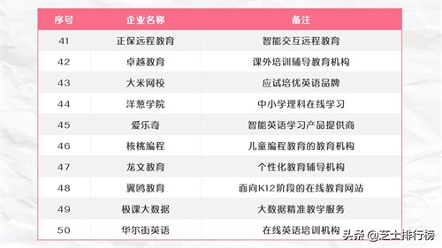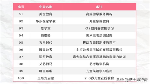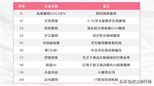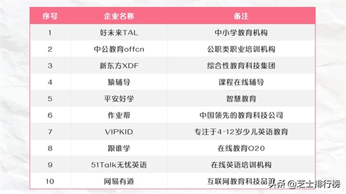 《互联网周刊》发布了“2020教育培训机构100强榜单”。其中好未来、中公教育、新东方位列榜单前三名,这些都是老牌教育培训机构。而在2020年大火的猿辅导、作业帮、跟谁学等线上教育机构也均挤进榜单前十名。