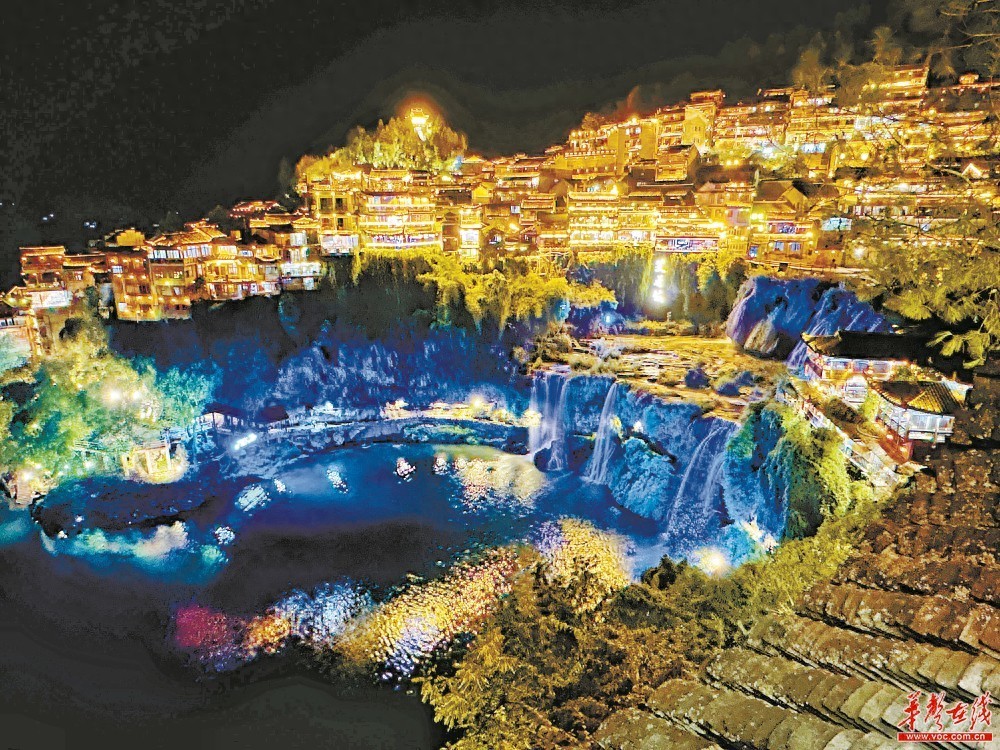11月25日晚,永顺县芙蓉镇景区,游客在欣赏古镇夜色。近年来,芙蓉镇对科技夜景灯光进行亮化升级,丰富夜间产品和夜游项目,进一步“点亮”旅游夜经济。 华声在线全媒体记者 徐行 摄