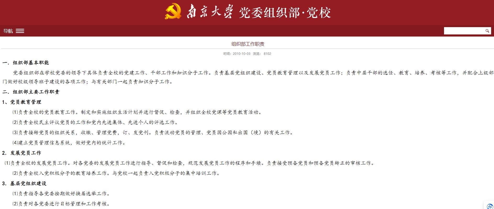 纪委监委的内设机构组织部、大学的内设机构组织部等都会有自己内设组织部,还有一些单位就是分管组织的党建办或人事办。