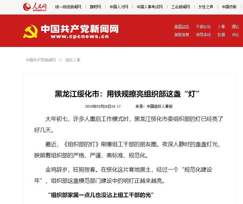 有一篇文章《组织部的deng》,每天晚上下班,路过政府大楼时,总会有一层的灯始终亮的,那就是组织部。