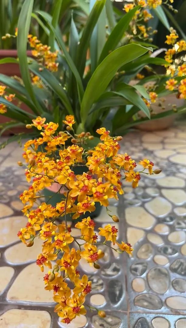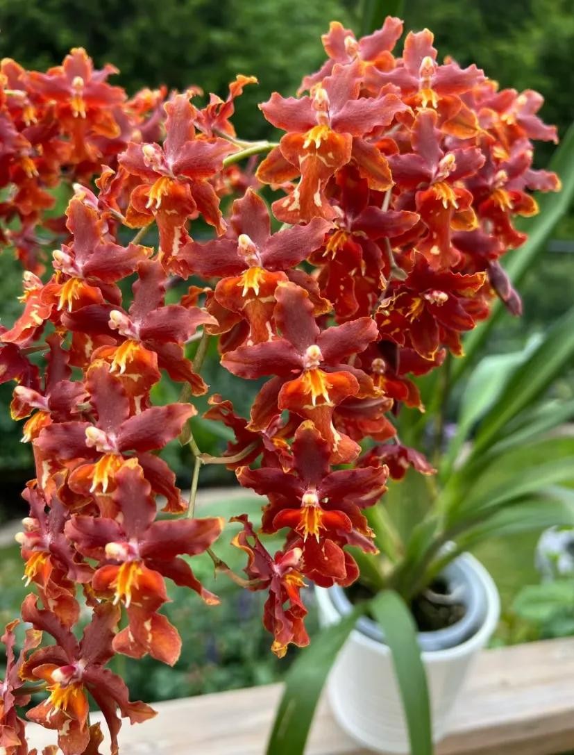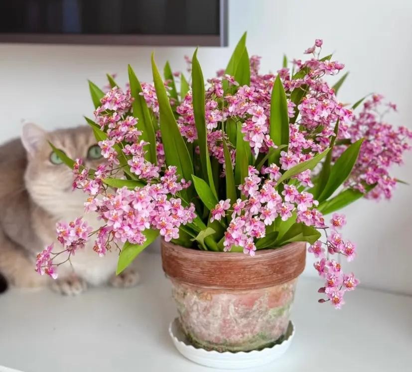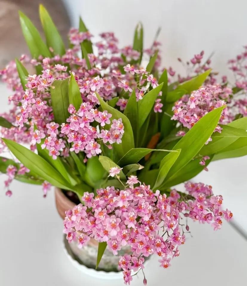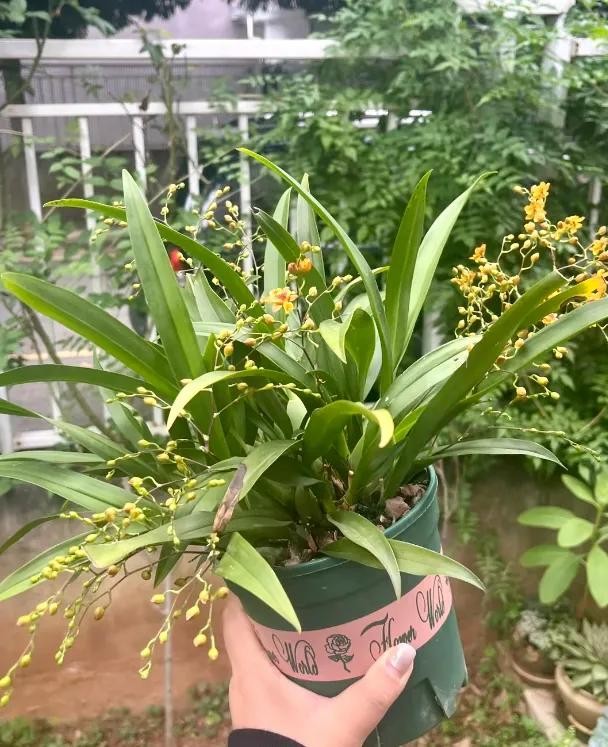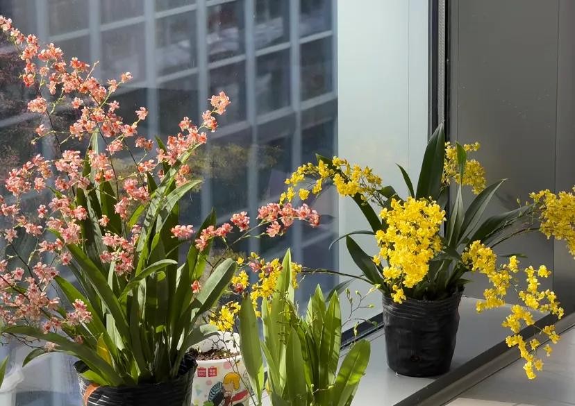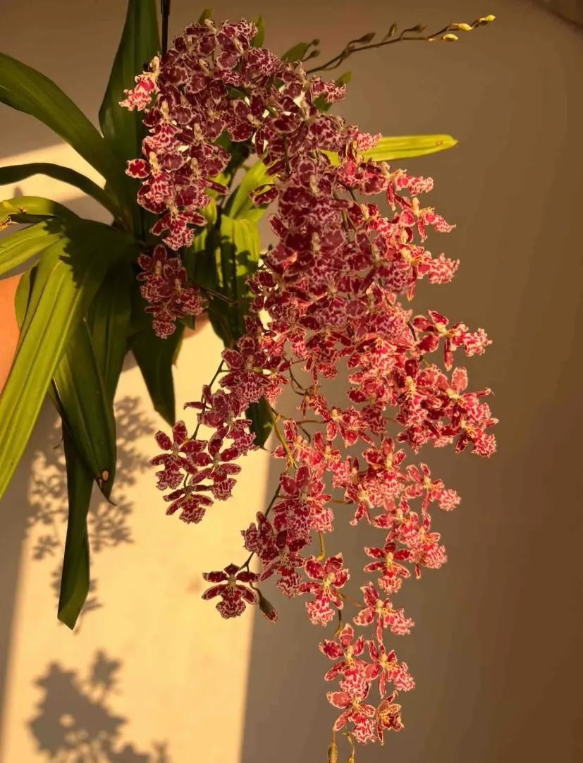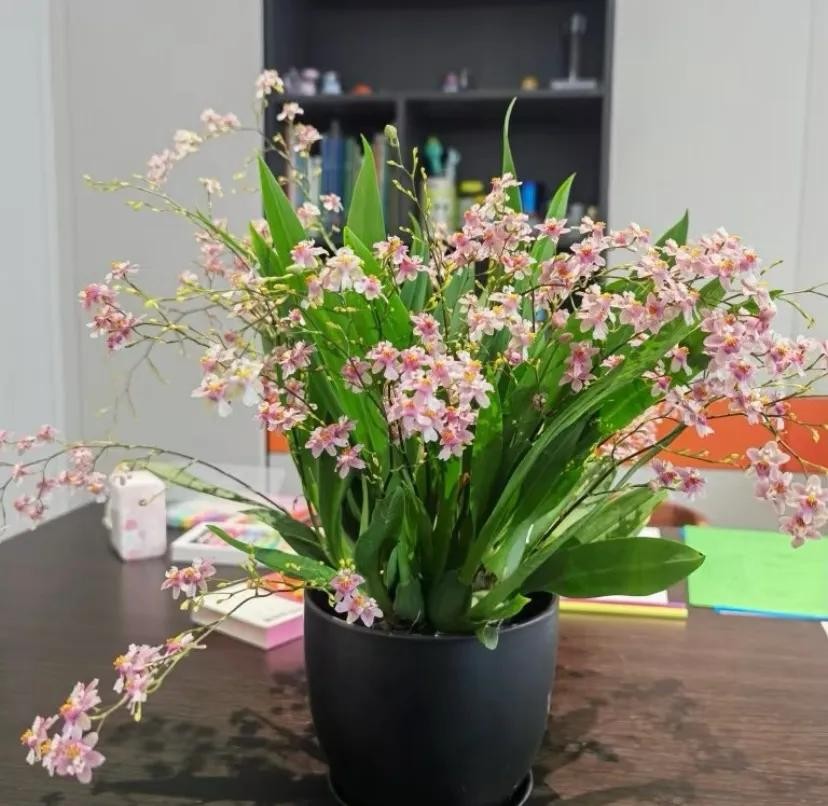 文心兰颜值高,整个株型看起来气质满分!开花的香味还是淡淡的奶油味。阿梅养的文心兰已经开花了,香气四溢,跟朋友开玩笑说,多闻一会都能闻饿了,因为是独有的奶油甜香味儿,太好闻了。