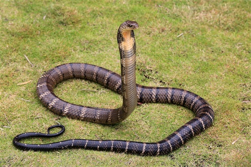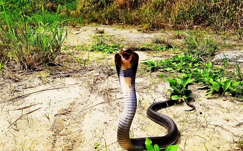 眼镜王蛇就是我们熟知的过山峰,有的地方也称之为山万蛇,是目前地球上体型最大的毒蛇。这种蛇主要分布于中国的西南与华南地区,喜欢栖息于海拔 0-2300 米的沿海红树林、草原、山区森林、农业庄园甚至寒冷多雪的山麓地带。与大多数毒蛇不同,它们白天外出觅食,夜间休息。