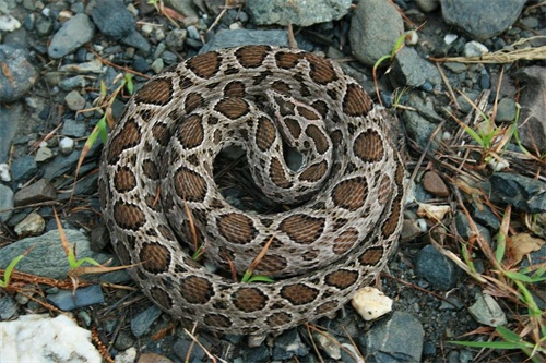 原矛头蝮又叫笋壳斑、龟壳花、老鼠蛇,曾经被称为烙铁头,广泛分布于长江以南地区。这种毒蛇喜欢生活于丘陵及山区,常到住宅周围如草丛、垃圾堆、柴草石缝间活动,活动时间为每日 17 时至次日凌晨 05 时,雨天出现率较高,活动高峰在 21 时至次日 1 时。