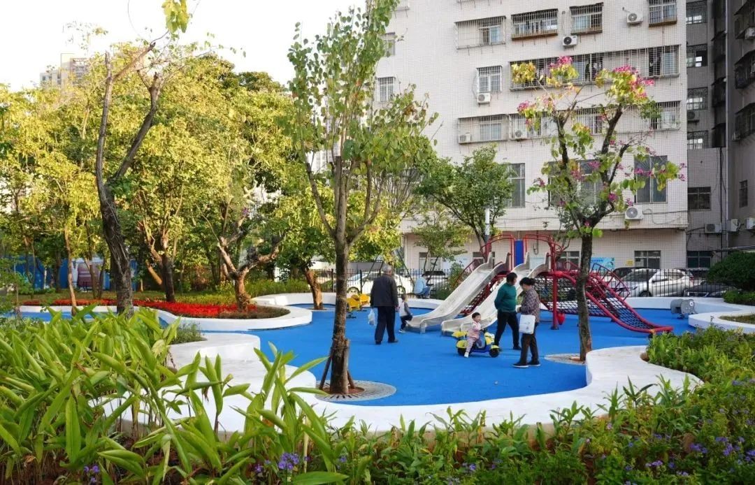 小游园让城市环境变得更美。公园里新装置的石桌、石凳非常适合我们老年人,我经常会约着朋友一起去公园聊天,心情可好了!