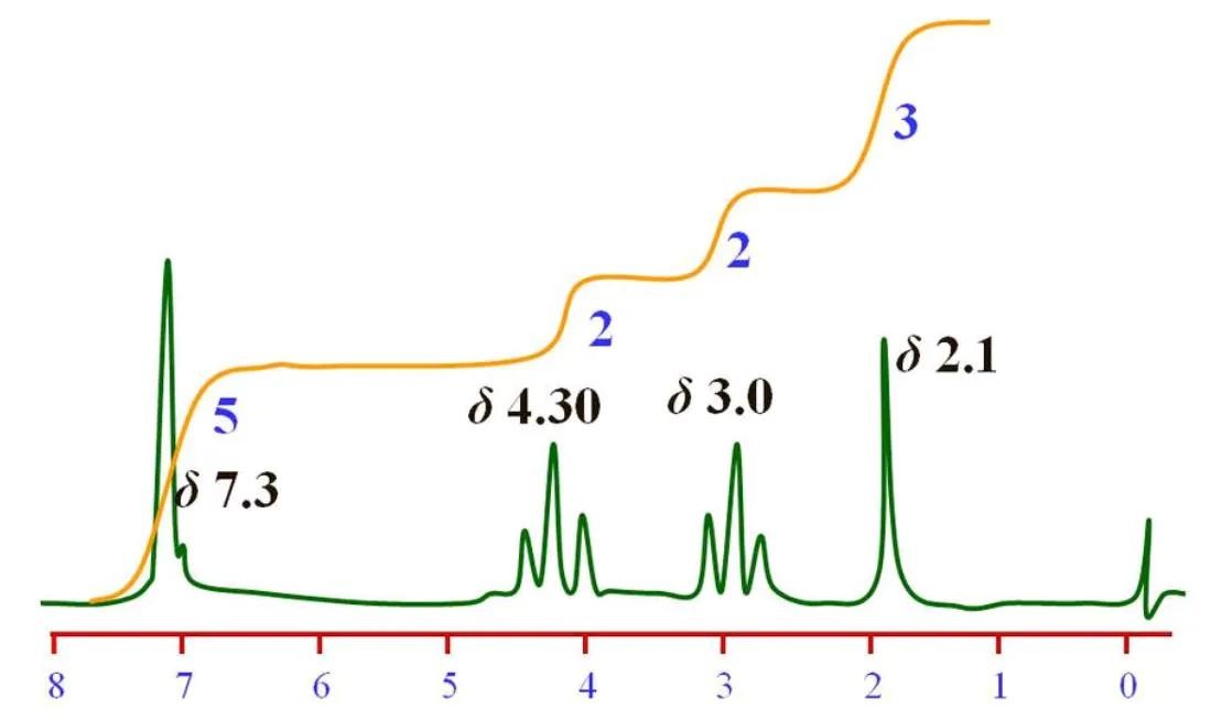 δ 3.0和δ 4.30处的峰组均对应两个氢原子,因此是两个亚甲基,两者峰型均为t峰,且峰间距基本一致,推测为相互耦合,即相邻的两个亚甲基。