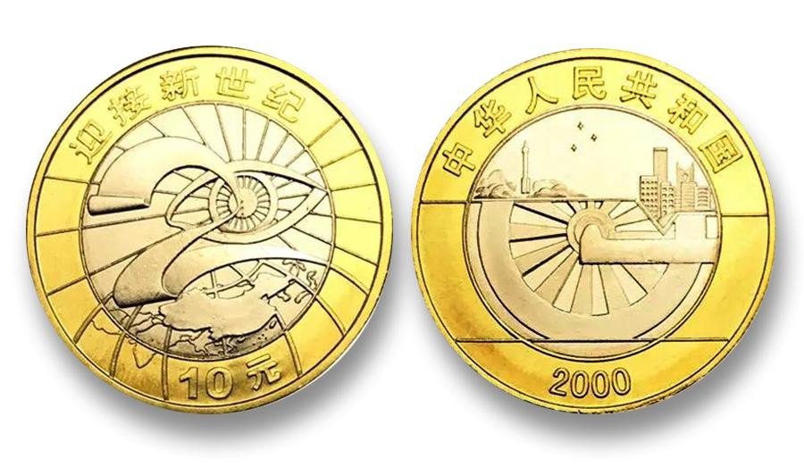 背面图案是迎接新世纪的代表性建筑——“中华世纪坛”,并以敦煌藻井图案作为衬景。