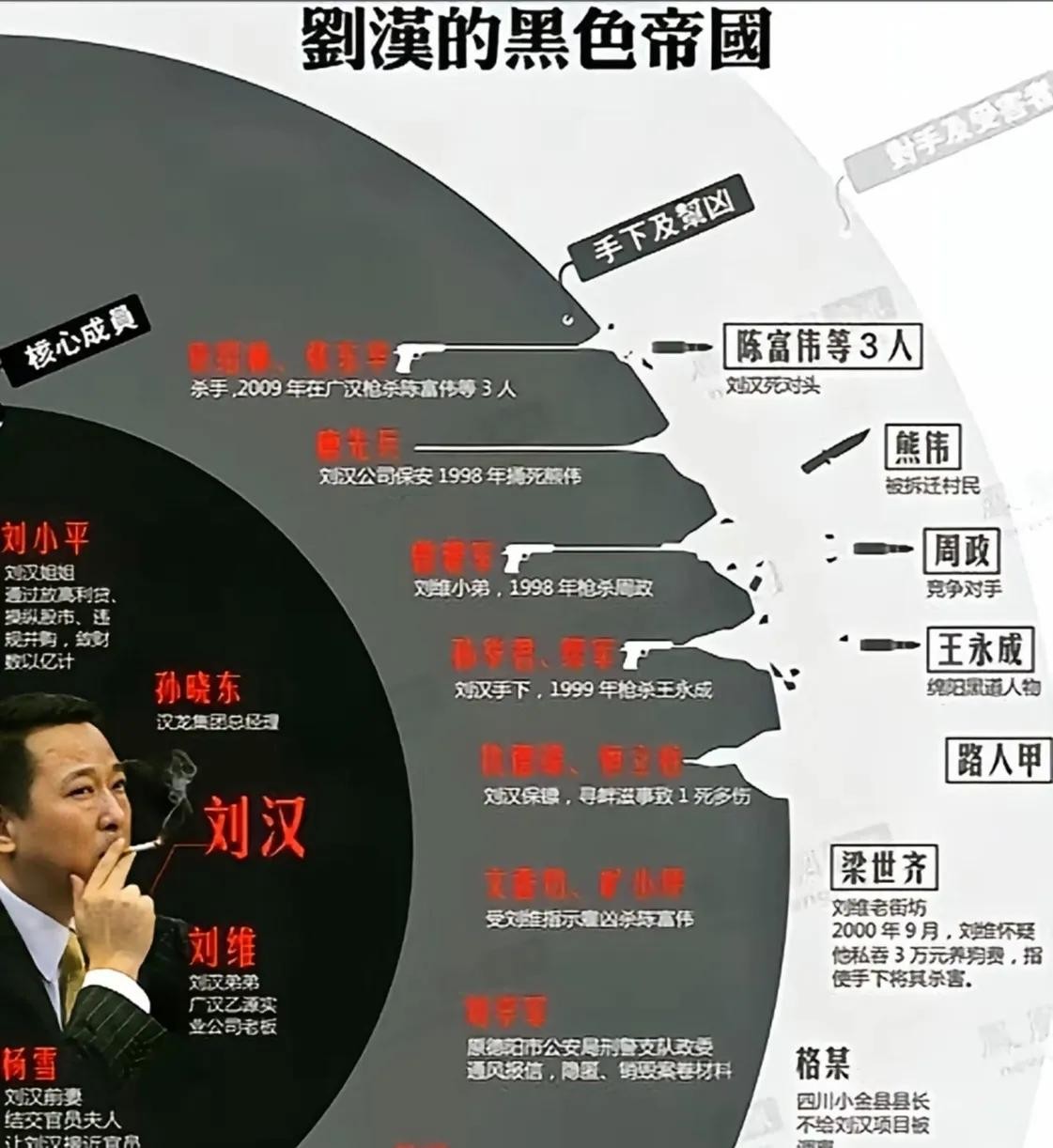 调查深入,刘汉的犯罪事实逐渐浮出水面。他以汉龙集团为掩护,组建黑社会性质团伙,通过暴力、威胁等手段垄断四川部分地区的矿产资源和建筑工程,赚得盆满钵满。为了维护自己的利益,刘汉团伙没少干坏事,故意伤害、非法拘禁都是家常便饭,甚至还有人因此丧命。