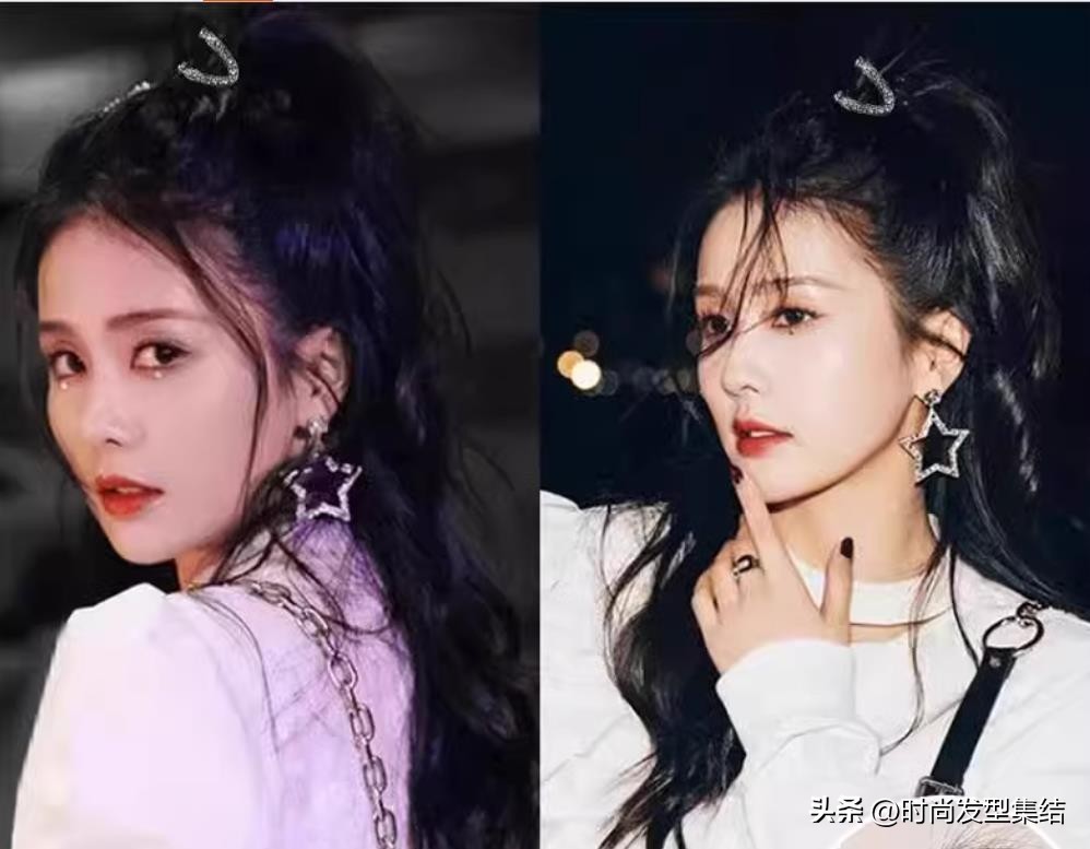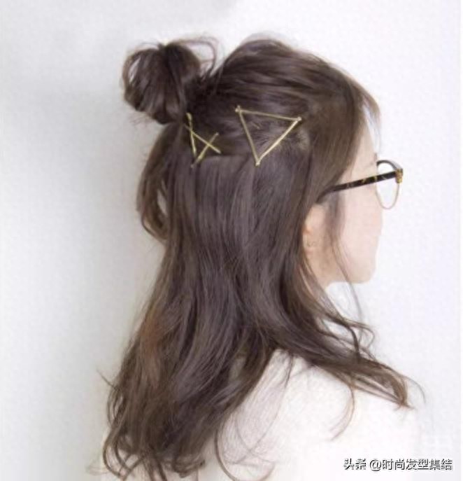 一、首选还是半丸子头的锁骨扎发发型,将头顶一半的头发给它半扎,轻松的形成一个活力可爱的半丸子。这种发型不仅减龄效还很显活力呢,快速提升整体造型感时尚感,给你的甜美加分!