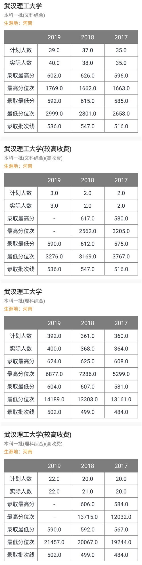 五、河南近三年录取分数