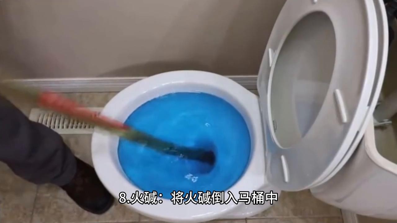 ·8.火碱:将火碱倒入马桶中,用热水冲泡等待一段时间后用皮搋子疏通。