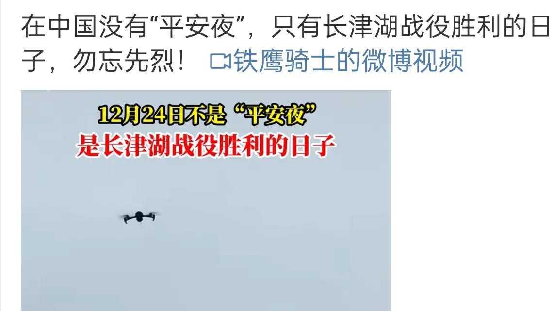 尽管大多数人将平安夜当做一个欢乐的日子,但部分网友提醒大家不要忘记历史。今年的12月24日不仅是平安夜,也是纪念长津湖战役胜利74周年的日子,值的铭记。