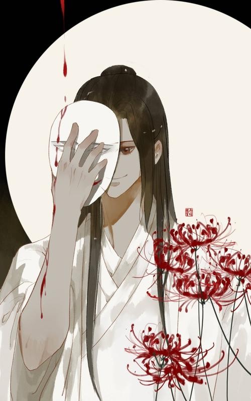 绝境鬼王,“血雨探花”。衣红胜枫,肤白若雪,右眼戴着一只黑色眼罩,妖艳动人,银蝶追逐在衣襟袖间。幼时为谢怜所救。后在铜炉山蛊城中用了十年铜炉成为鬼王。拥有鬼市,是鬼市城主,非常富有。谢怜第三次飞升后与他再遇。