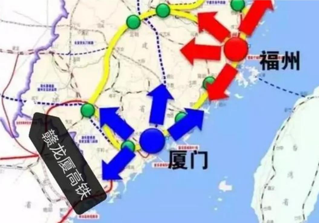 为了解决目前缺少高标准高铁通道的问题,福建省规划了一系列时速350公里的高速铁路,首条时速350公里的线路就是福州至厦门至漳州的福厦漳高铁,目前正在建设中,其余规划的线路几乎都是出省通道,而且都是国家"八纵八横"高铁路网中的组成部分,例如温福高铁、漳汕高铁、赣龙厦高铁,前面两条属于沿海通道,而赣龙厦高铁属于渝厦通道。