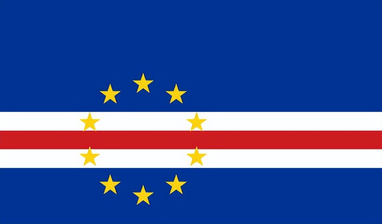 蓝色象征海洋和天空,白色象征希望和平,红色象征人民的努力,条带象征佛得角人民用勤劳的双手建设国家的道路,五角星圆环象征佛得角民族及其团结。