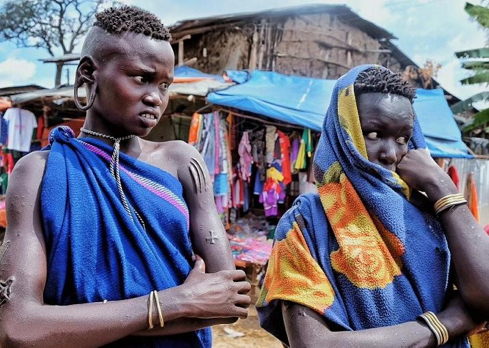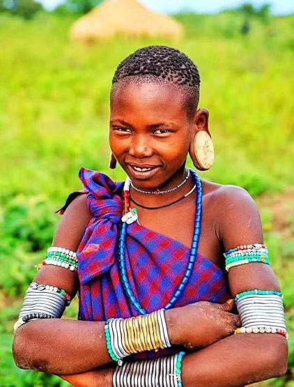 在非洲的埃塞尔比亚有个莫西族也就是唇盘族,真正的刀耕火种的原始部落,脱离现代文明社会的地方,没有电,住草棚,用刻画形状火烧皮肤做纹身,也是史上“最疼”纹身了,先用小刀割出形状,再用火烧,就成型了。