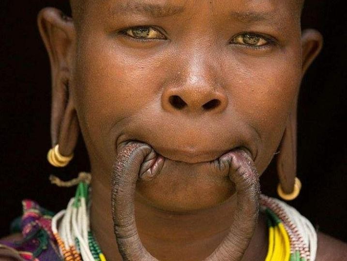 在这里女子15岁的时候就要开始佩戴了,他们的父母会组织划开女儿的下嘴唇和牙龈,然后把唇盘放在划开的伤口中,过程非常的血腥,同样的他们也以唇部的畸形为美,要是不是这样的女性根本嫁不出去。