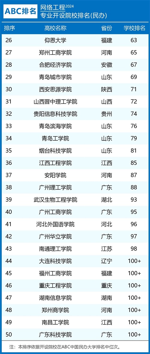 组图2:2024年网络工程专业开设院校排名(民办前50)