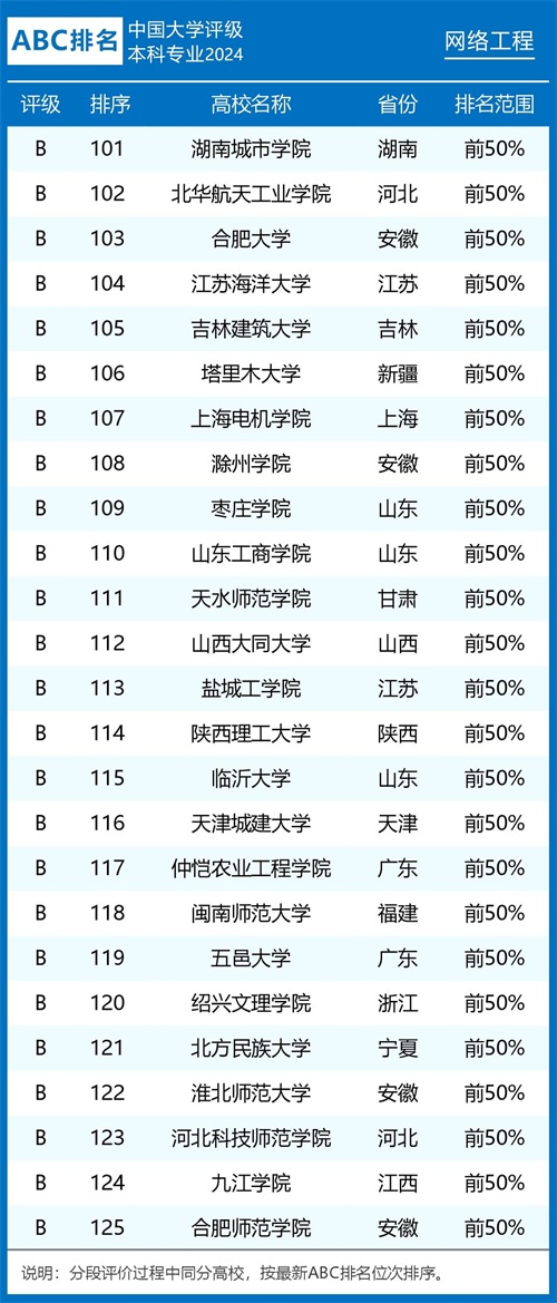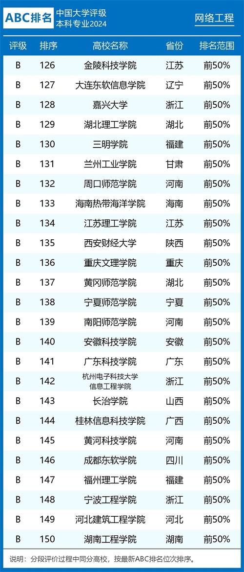 组图1:2024年ABC中国大学网络工程专业排名及评级结果B类以上院校