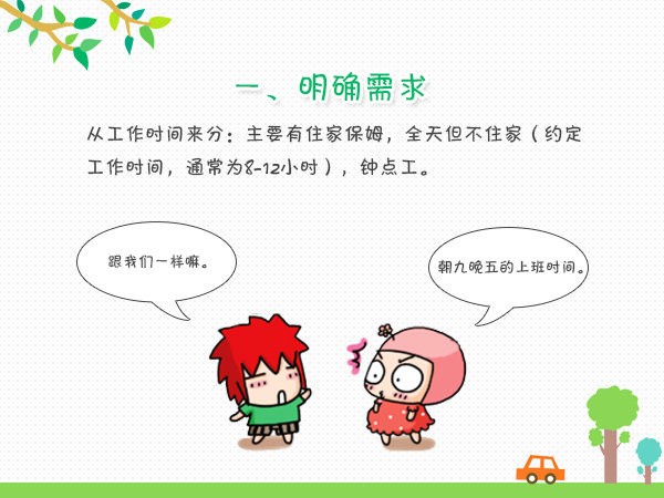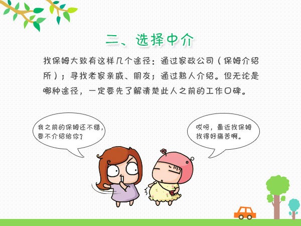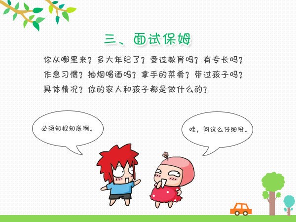 首先选择保姆要有明确的要求,要分清是带小孩的还是做家务的,还是照顾病人或者老人的。