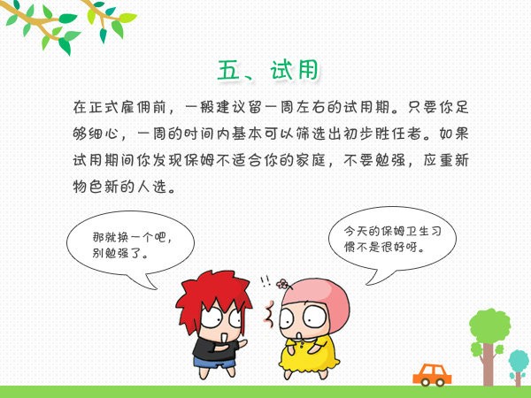 很多保姆都是可以有试用期的,这一点宝爸宝妈一定要在关键时刻利用上。