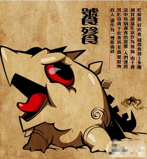 十分贪吃,见到什么吃什么,最后把自己都给吃掉了。它是贪欲的象征,所以常用来形容贪食或贪婪的人。古代钟鼎彝器上多刻其头部形状作为装饰。