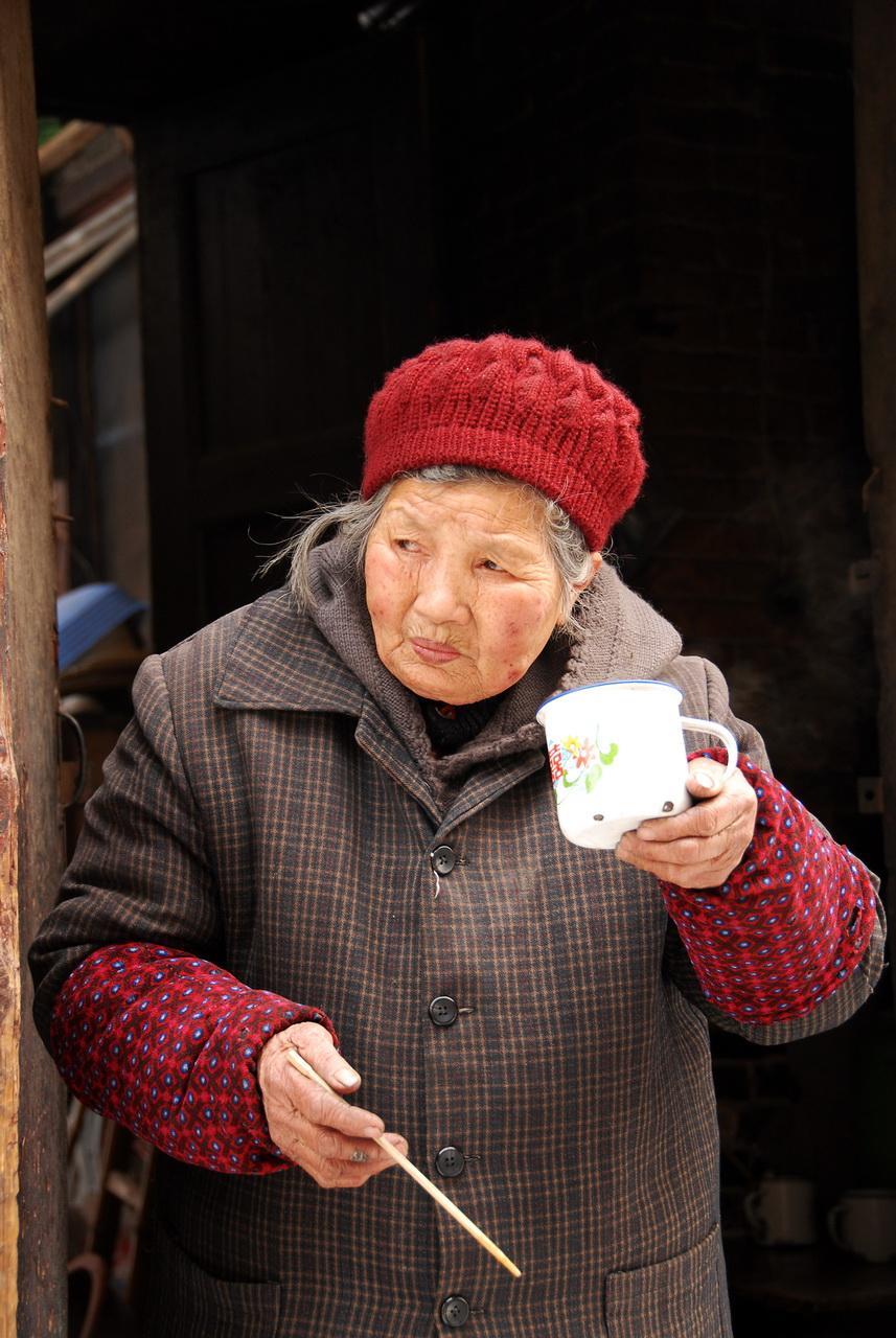 喝姜茶御寒的高太婆(周国献2008年1月拍摄)