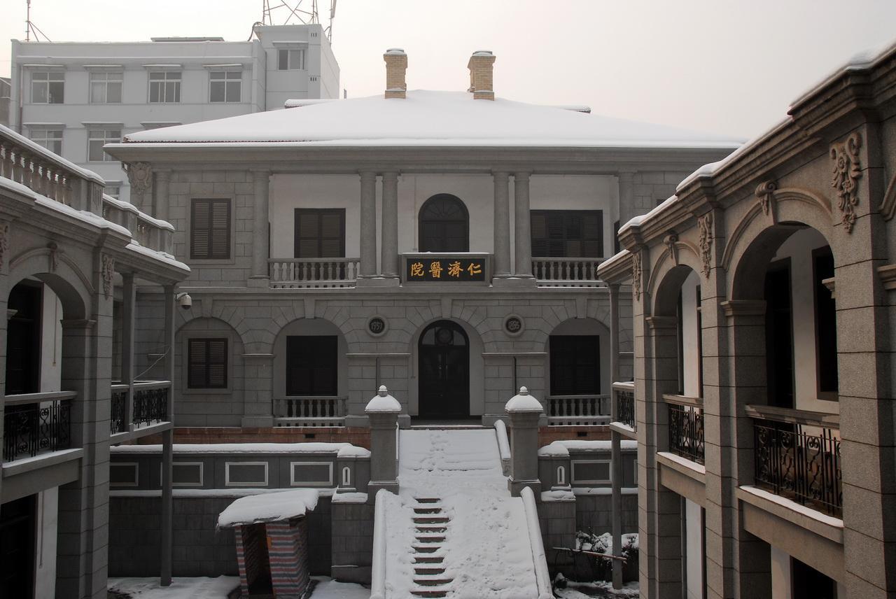位于昙华林的仁济医院建于1895年,原名英国伦敦教会医院,由英国基督教伦敦会慈善机构杨格非牧师和中华基督教会创建,是近代西方医院传入武汉后保存完好的医院之一。其建筑是中西合璧式样的砖木结构,既有文艺复兴风格的廊柱,又有中国式样的下沉回廊,附楼石拱门的浮雕图案也很别致。