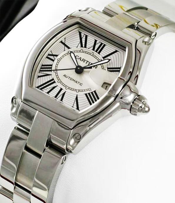 此款卡地亚可谓是外型与内涵兼具的表款。精钢表壳与华美表冠自然衔接,与放大日历形成独特造型,复古罗马数字演绎着在过去与未来间游离的唯美风,防水深度100m,适合运动与忙碌都会生活。