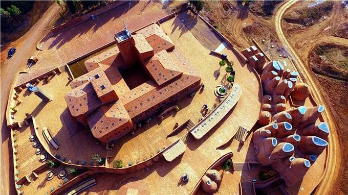 这是一座座砖结构的城堡,没有一根钢筋水泥和木料,通过几何结构原理,一块块砖交错搭建而成,就像小时候看的万花筒。