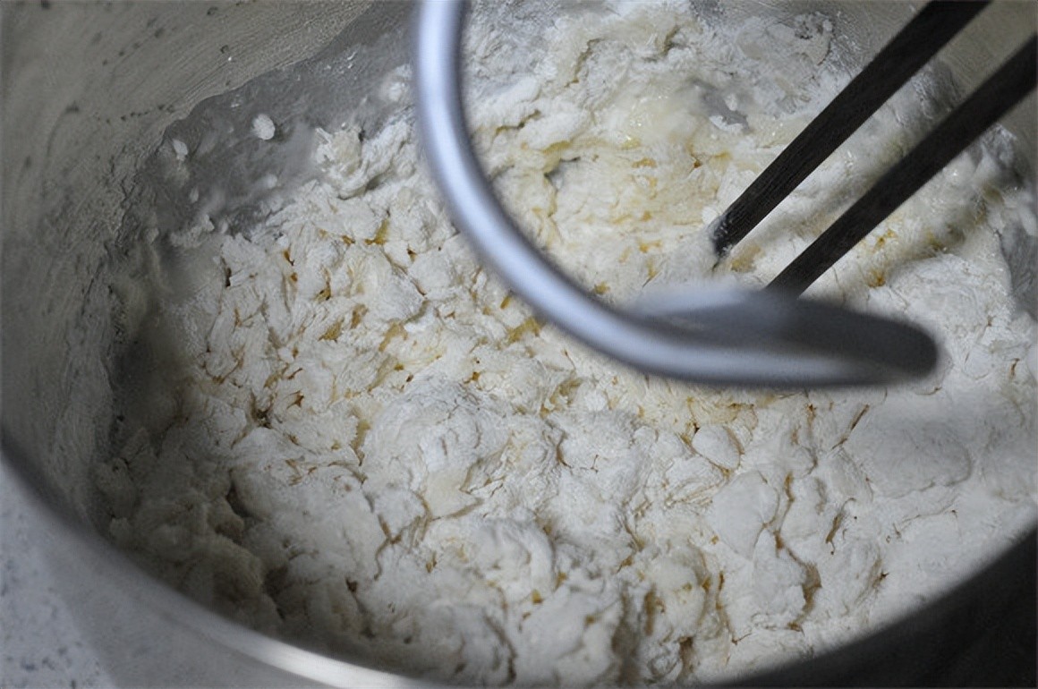 加入猪油(我用的是植物油),继续搅拌5分钟,面团变得顺滑。