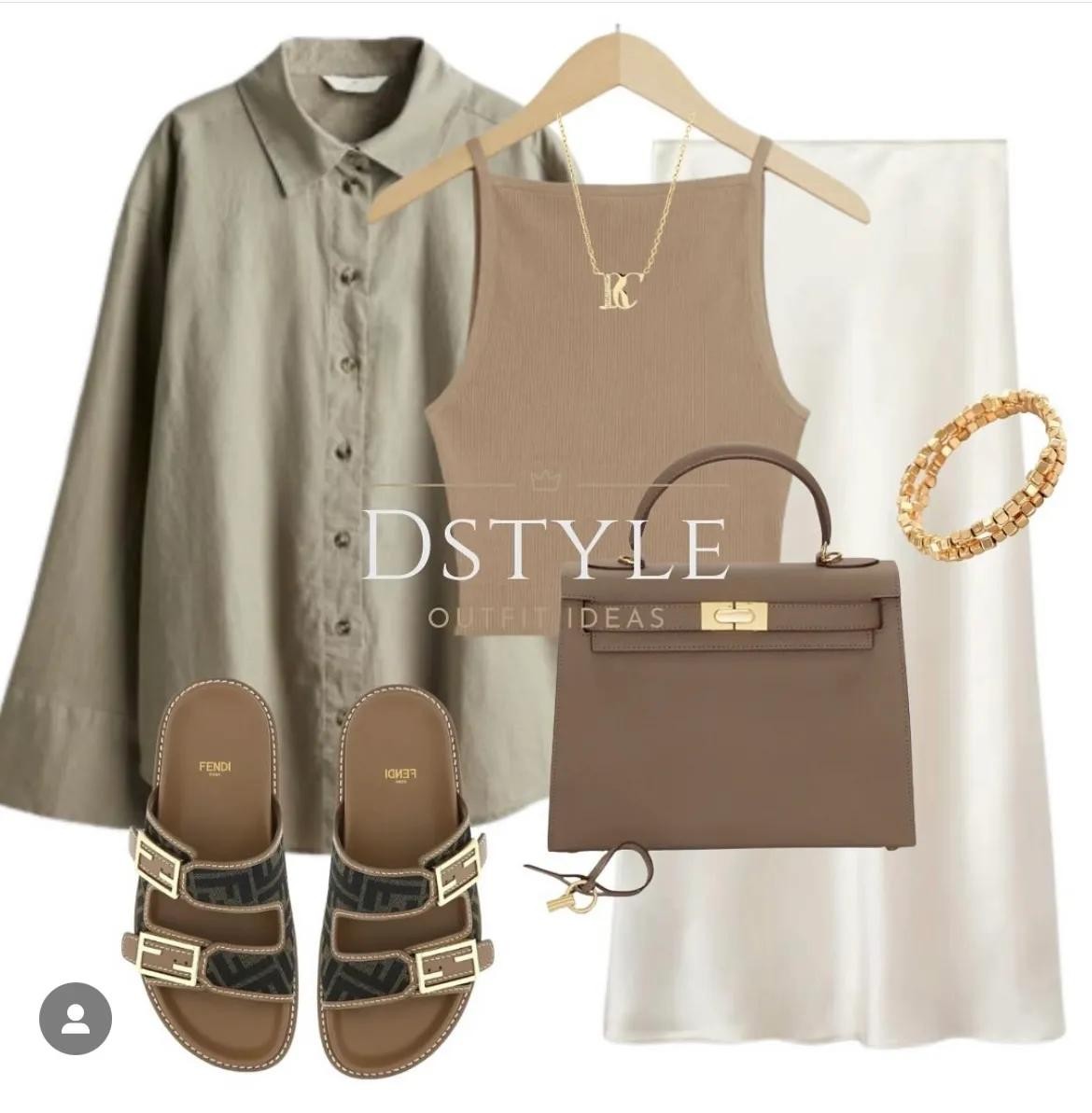 当翻着光泽的半裙遇到豆绿衬衫,雅致配色最适合这样的极简组合,清爽大方就能为日常穿搭赋予美感。还可以选件一字肩的背心,就能把衬衫做外套,轻柔也耐看。