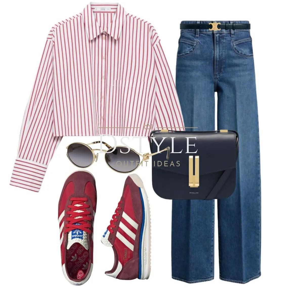 想穿出好身材比例首选短款衬衣,高腰牛仔裤正好衔接出长腿线条。而红白条纹+深牛仔蓝则是美式活力组合,轻松穿得减龄。