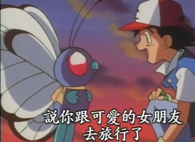 再后来绿毛虫进化成巴大蝶,为了幸福也离开了小智和霞姐。