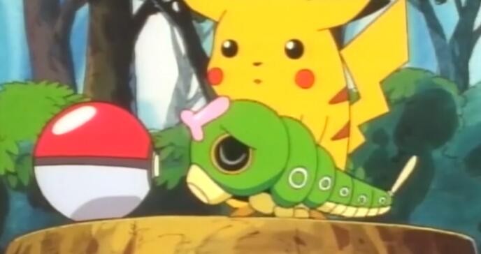 在无印的第三集,绿毛虫就和皮卡丘上演了无印中最经典的一幕,这一幕也成为许多人的童年回忆,不得不说绿毛虫真是太可爱啦!但那时的绿毛虫被我们的霞姐讨厌着,一句小小的话把绿毛虫弄的自闭。