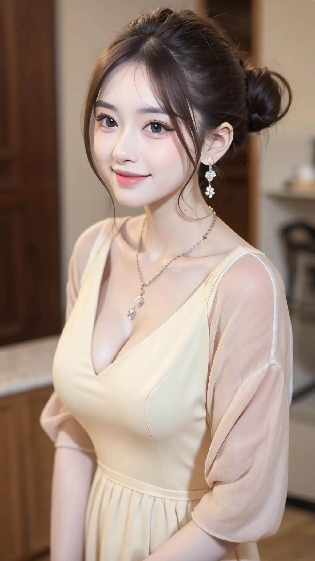 清纯美女穿着连衣裙,搭配短发,展现出一种养眼而又美丽的风采。
