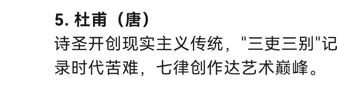 诗圣杜甫开创了现实主义诗风,其“三吏三别”真实记录了那个时代的苦难。