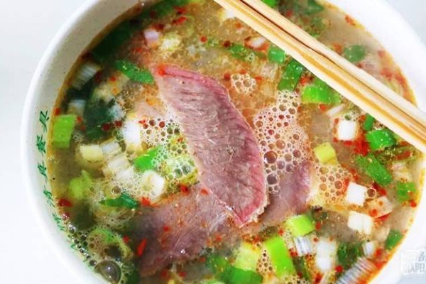 喝驴肉汤,除了可以放驴肉、驴板肠,驴肚等经典食材之外,还有就是可以放驴鞭,大补功效仅次于鹿鞭。除了这些之外最有特色且是上品中的精品的就要数“驴白血”了, 其外表温润如玉,晶莹剔透,白而细嫩,口感有如蛋清清脆爽滑。驴白血经驴血运用传统秘制工艺将其血蛋白提炼出来后制成,其蛋白质含量极高,营养丰富,可大补元气,养血安神,老少皆宜,食者称绝。对了,早上喝驴肉汤时一定要搭配烧饼或饼丝,将烧饼和饼丝放进汤里,吃起来那件一个美味。