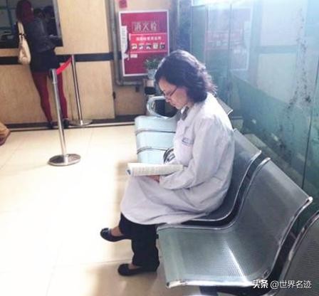 她穿上了白大褂,整天坐在医院的走廊里看书,成了医院里一道亮丽的“风景线”。