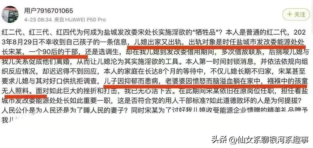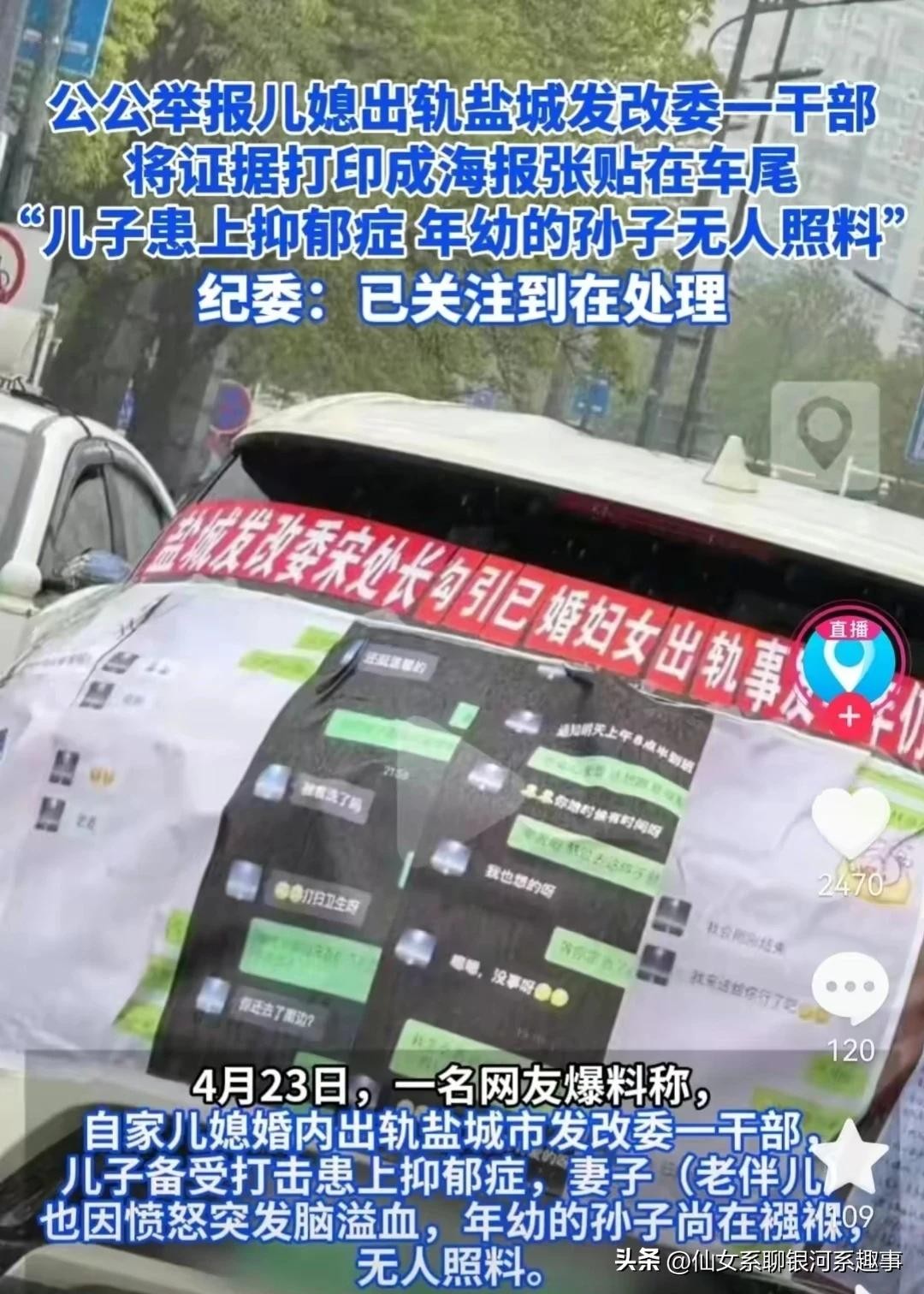 由于江苏盐城李先生在网上曝光自己儿媳婚内出轨宋处长的事件在网络上持续发酵。