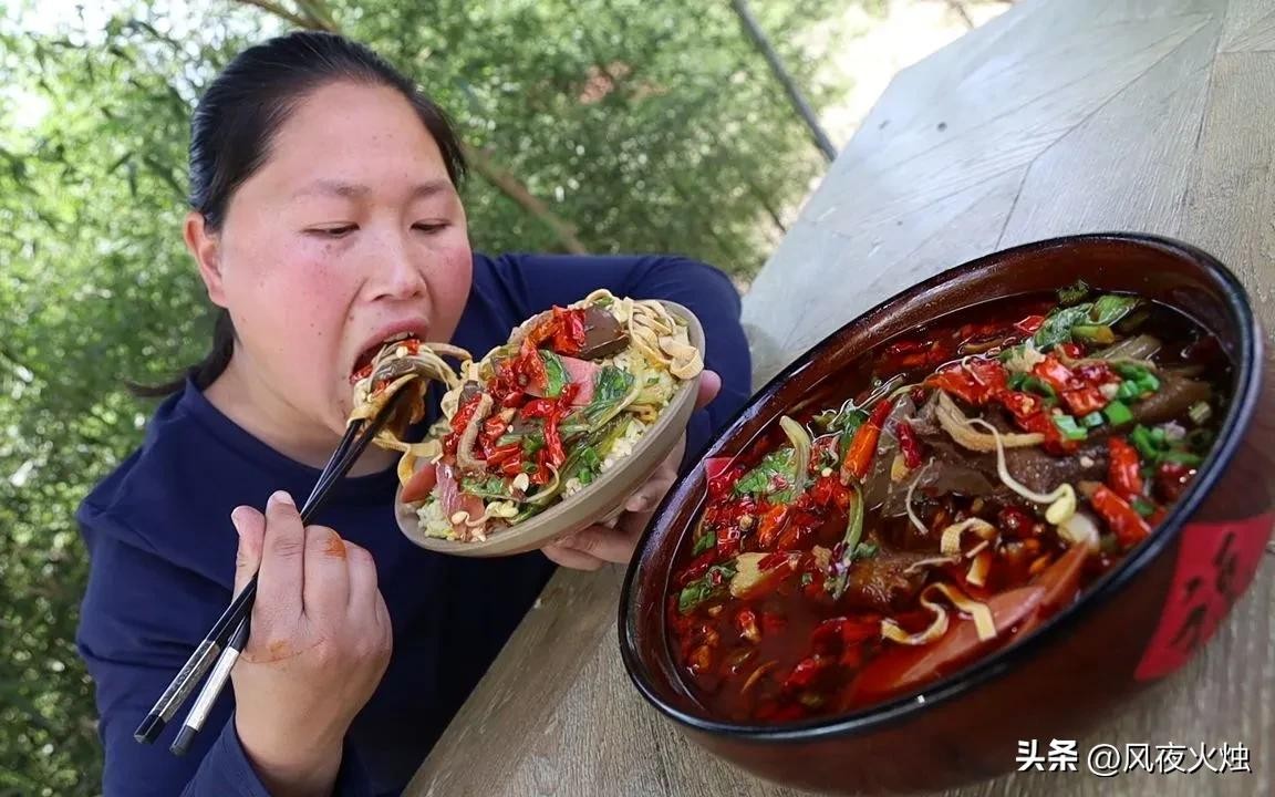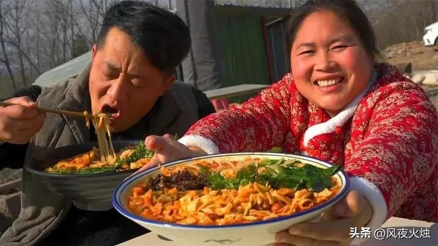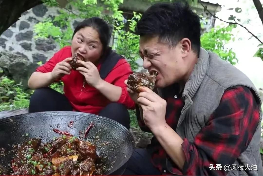 让她发现了流量密码,从此以后她拍摄农村美食短视频,无肉不欢,顿顿大鱼大肉,大碗吃饭,山吃海喝,让人看得太过瘾了。