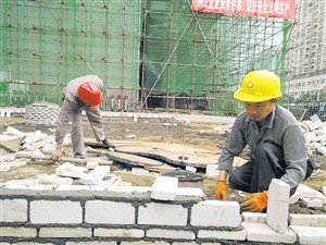 项目现场,工人们正在抓紧施工中。 本报记者 陈小萍 摄
