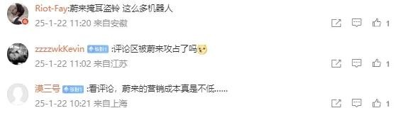 话说回来,这些口径统一的评论话术,难免被明眼人质疑,指明“评论区被蔚来攻占了吗”、“看评论,蔚来的营销成本真是不低”。不过在我看来,这些口径统一的话术——源自蔚来的忠实拥趸。