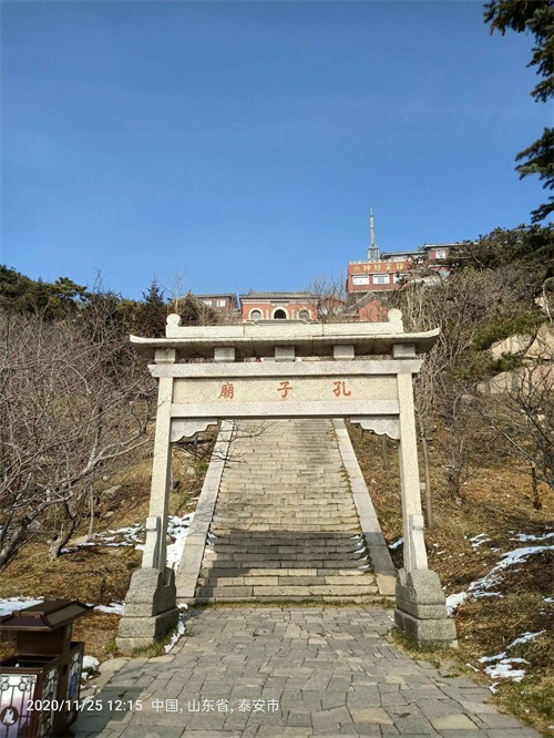 孔子,名丘,字仲尼,为春秋时期鲁国陬邑(今山东省曲阜市)人士,祖籍宋国栗邑(今河南省夏邑县),中国古代伟大的思想家、政治家、教育家,儒家学派创始人、“大成至圣先师”。供奉于天街孔子庙。泰山孔子庙位于泰山天街东端北侧,始建于明嘉靖年间,由尚书朱衡主持兴建。