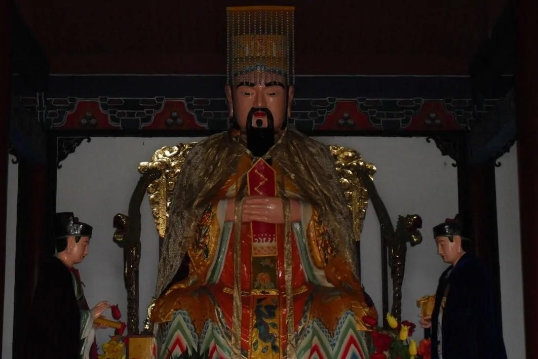 东岳大帝传说之一为黄飞虎,又名泰山神、青帝,道教赋予了他极高的地位,在道教典籍里称其为“东岳大生天齐仁元圣帝——独居中界,统摄万灵。掌人间善恶之权,司阴府是非之目,案判七十二曹,刑分三十六岳,惩奸罚恶,灵死注生,化形四岳四天圣帝,抚育六合万物群生。”主生、主死,掌管阴曹地府、十殿阎罗,是帝王受命于天、治理天下的保护神,所以历代帝王对其祭祀崇奉。农历三月二十八为其诞辰,供奉于岱庙天贶殿。